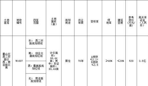 - 2016年11月28日11月7日下午,合肥土地市场网发布公告,蜀山区原荣事达包装箱厂地块正式踏上拍卖日程,据现场拆迁人员透露,目前已有多家开发商做过实地考察。蜀山区荣事达包装箱厂地块编号为W1607,地块位于蜀山区西二环与樊洼路交口西南角。地块计价面积86.44亩(发证面积80.44亩),规划用途为居住,容积率A地块≤2.2、B地块≤2.5,绿化率≥40%,参考地价520万元/亩,竞买保证金2.5亿元。拍卖起始时间为1...