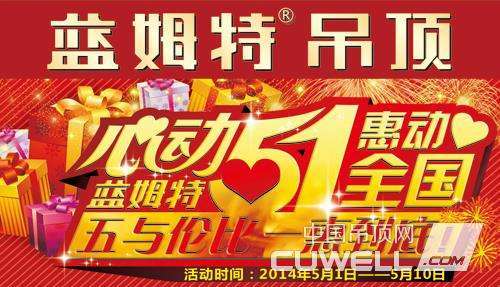 - 2016年11月25日在五一节假日即将到来之际,为了答谢广大新老客服对蓝姆特的关爱与信任,以及让更多的消费者享受到蓝姆特吊顶带来的极致生活体验,2014年五一期间,将在全国范围内开展“心动五一,惠动全国”的主题大型促销活动。届时,只要您去到全国任何一家蓝姆特专卖店,您就能享受到无与伦比,一惠到底的绝对优惠价格,给广大消费者的节假日居家购物带来一场特惠饕餮盛宴。此次促销活动力度空前,特惠惊人,共有五重活动,包括:纳米抗油...