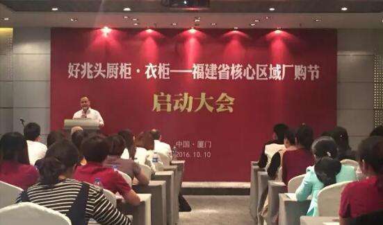 - 2016年11月24日10月10日,好兆头厨柜·衣柜厂购节活动福建站启动大会在厦门国际会展中心酒店隆重召开,好兆头橱柜董事长陈加栋、营销总监周总出席了会议,联盟单位龙发装饰厦门负责人魏总,好兆头橱柜福州、泉州、厦门、龙岩、漳州区域经销商代表、店长及设计师齐聚一堂,共谋家装大业,打响黄金十月厂购战役!会议开始,在主持人宣解本次活动宗旨、目标和任务分解后,董事长上台致辞并鼓励各区域经销商及与会同仁,勇于拼搏,打好打胜此次黄...