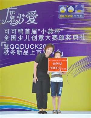 - 2016年11月24日“魔力?爱--可可鸭首届‘小燕杯’全国少儿创意绘画大赛”由可可鸭童装携手小燕画院联合举办。大赛以少儿绘画为活动内容,面向全国少年儿童传达“爱、温情”健康、积极的理念,旨在帮助幼儿从小建立艺术思维、发展创作能力,培养亲子间浓郁的亲情文化。据主办方可可鸭童装介绍,大赛开展以来,已经收到大量来自全国各地小朋友们的绘画作品,这些作品充满着童趣及魔幻色彩,他们将从中挑选部分优秀作品纳入到可可鸭2013年春夏...