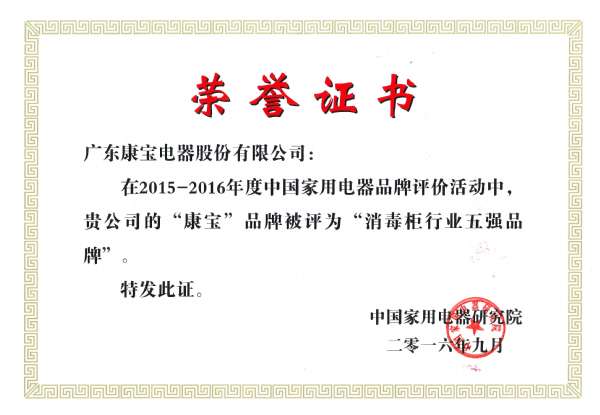 - 2016年11月23日日前,由中国家用电器研究院主办、中怡康时代市场研究有限公司数据支持、苏宁云商集团股份有限公司渠道支持的“2015~2016年度中国家用电器行业品牌评价结果发布会”在北京举行。会上,主办方发布电冰箱、洗衣机、空调、空气净化器、消毒柜等十类产品的评价报告,广东康宝电器股份有限公司生产的“康宝”牌消毒柜获评为“消毒柜行业五强品牌”。据主办方有关负责人介绍,本次评价活动采用静态和动态两者相结合的评价方法,...