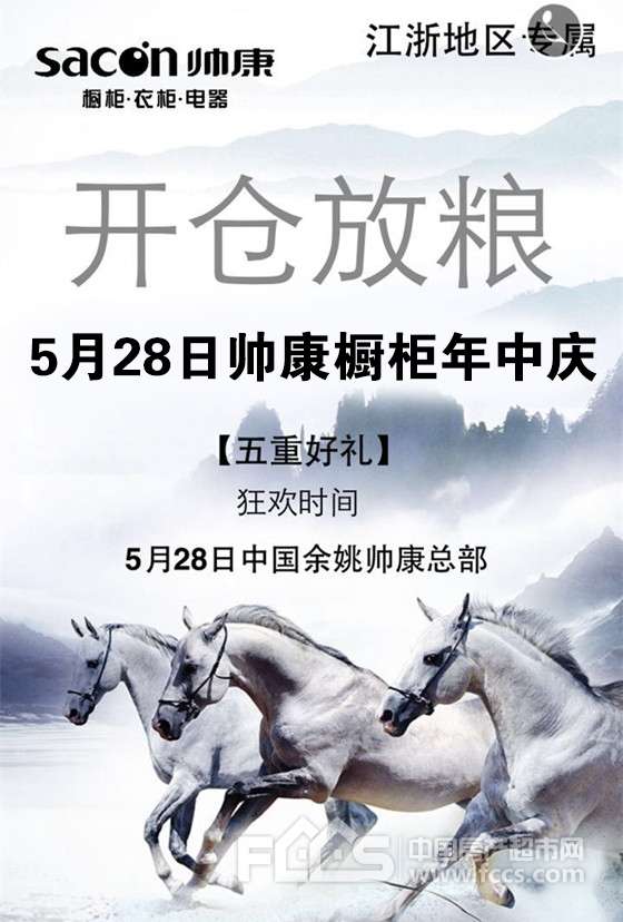- 2016年11月23日5月28日帅康橱柜年中庆5重好礼等你来认领![导读]5月28日帅康橱柜年中庆5重好礼等你来认领!活动地址:中国余姚帅康总部五重豪礼等你来认领:厂购日当天,到达各会场的客户均赠送无忧枕一只(凭邀请函领取,每张邀请函限领一只)订单满2000元,赠送拖把一个订单满5000元,返现300元+赠送拖把一个订单满10000元,返现1000+赠送拖把一个(主持人现场砍价,红堡、埃丽亚、北欧原木、格拉芙)按照总部...