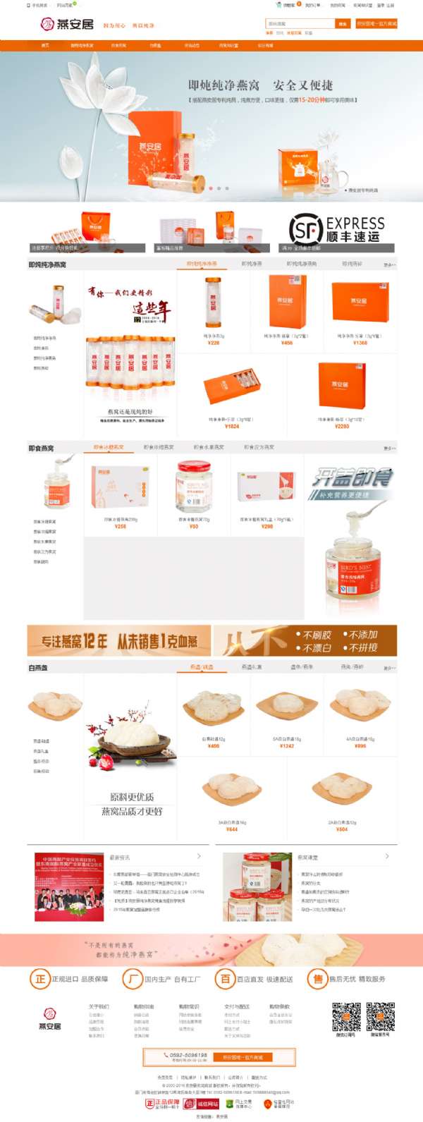 - 2016年11月22日全国加盟连锁的燕窝品牌――燕安居品牌燕窝官方商城经过调整更新,目前以全国唯一线上购买平台网络官方商城(燕安居为了更好的为每一位客户服务,便于客户能够及时简单的进行购买,特别对以前的商城进行整改。目前商城主要以白色、橙色基调为主,不仅表现了白色的简单明了,又体现了橙色的活力与时尚。为了便于客户及时、快捷的下单购买,特将所有产品分门别类的作为菜单显示在网页顶端,客户一打开网页便可看见,大大降低客户的购...