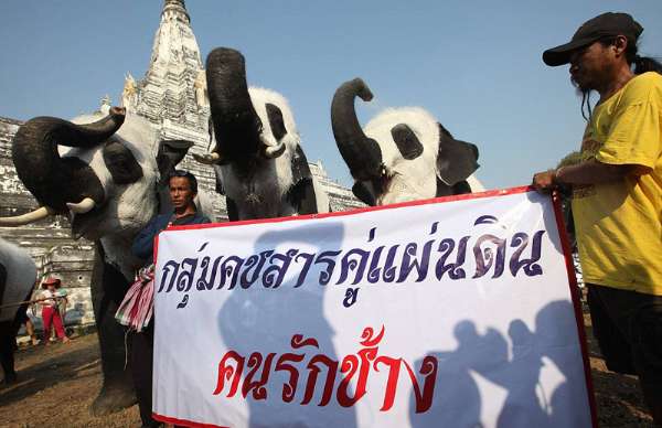 - 2016年11月19日泰国南部大城府皇家象园村举办不同寻常的设计展,大象被打扮成熊猫模样。(网页截图)据英国《每日邮报》3月23日报道,大象组织Elephantstay日前在泰国南部大城府(Ayutthaya)皇家象园村举行了名为“1600只熊猫”的国际设计展览,此次展览中,Elephantstay工作人员将3头大象扮成了熊猫模样成功吸引了游客们的眼球。据悉,工作人员用丙烯酸漆涂料,将大象的鼻子、眼睛、耳朵以及腿部涂成...