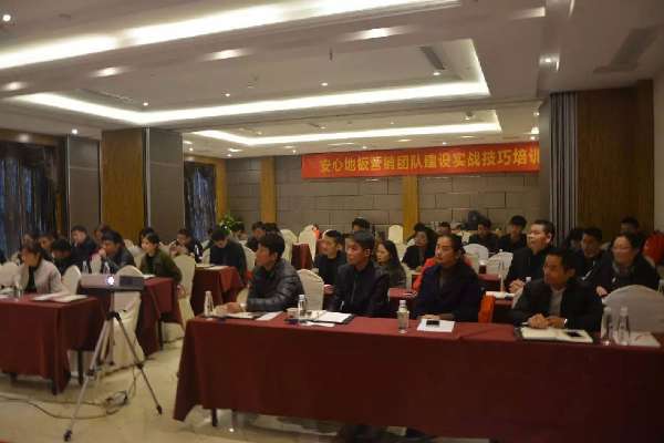 - 2016年11月19日11月8日-9日,安心地板首届营销团队实战技巧培训班在安徽圣达开启。为举办本次营销团队培训,安心公司市场部经过四个月精心准备,实践并总结了一套高效的营销团队管理模式,希望通过本次培训推广给广大安心地板经销商,帮助门店业务员提升业务能力,提升业绩。据了解,本次营销团队实战技巧培训活动受到了安心地板总部的高度重视,安心地板市场部总监曹苏荣化身讲师,亲自为安徽地区六十余位安心经销商团队成员传授销售知识,...
