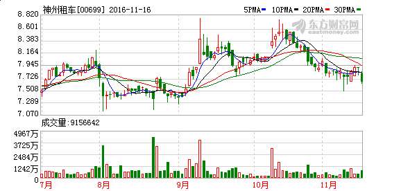 - 2016年11月17日中金:维持神州租车(00699)“买入”评级下调目标价至9.57元广告:您有10万元体验金未领取!智通财经获悉,中金近日发表研报表示,神州租车(00699)前九月租金收入38.37亿元,同比增长19%;经常性净利润7.03亿元,同比增长1%;第三季租赁收入增加12%、调整后利润降低15%,大致符合该行预期。中金给予其“买入”评级,目标价9.57元。报告提到,第三季短期租金收入增加19%。租赁收入(...