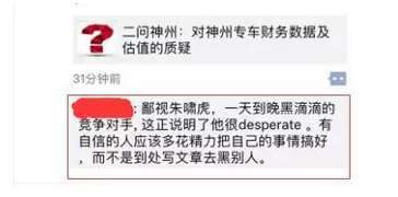 - 2016年11月17日今日,金沙江创投合伙人朱啸虎发文质疑神州专车的财务数据和估值,继今年4月称神州专车是伪共享经济后,朱啸虎一年之内第二次向神州发难。且不论文章内容及观点如何,作为滴滴出行天使投资人,朱啸虎两次抹黑所投企业的竞争对手,这在中国投资界算是前无古人的现象,恐怕也会后无来者。我们从两个维度谈一谈这位投资人的所作所为。业界耻笑,投资人频频抹黑竞争对手先不说朱啸虎质疑的内容是否准确,业界对于他的行为也是一遍哗然...