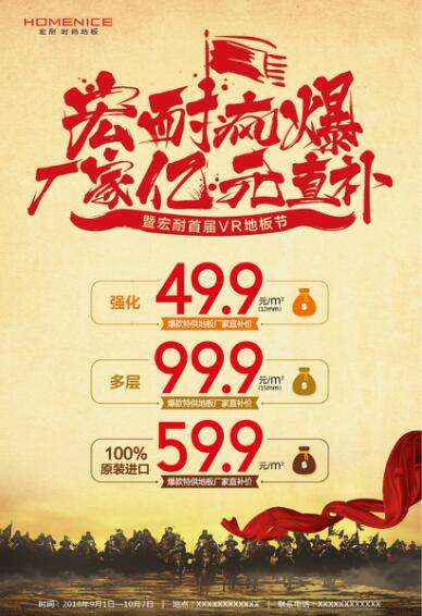- 2016年11月9日】9月1日――10月7日,宏耐疯爆,厂家亿元直补,暨宏耐首届VR节!疯爆活动席卷全国!宏耐引领地板行业爆品时代,率先提出互联网+理念并结合空前爆品,全国首推\...
