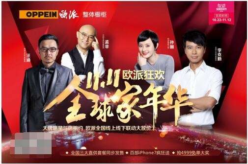 - 2016年11月8日双11如今早已成为低价的代名词,消费者已从价格轰炸中感到些许疲劳,甚至难以区分真假优惠。但也有一些商家玩出了新花样,用别具一格的方式吸引人们的眼球。国内橱柜第一品牌欧派橱柜就使出了娱乐营销的拿手好戏!针对今年双11,欧派斥巨资重磅邀请李克勤、汪涵、孟非等国内的一线大牌明星强势助阵,在广州、贵阳、武汉三大会场进行全国现场多屏同步直播,与粉丝精彩互动。“明星+促销+大奖”的新玩法让大众直呼新鲜!据了解...