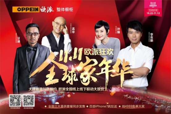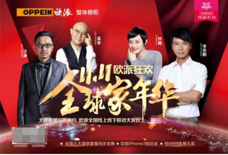 - 2016年11月8日欧派橱柜在行业内的娱乐营销是可谓是遥遥领先于其他品牌的,从赞助《中国好声音》、《极速前进》、宋仲基亚洲粉丝见面会,再到最近火爆全球的张学友世界巡演。此次,欧派橱柜再次发力,在天猫双十一期间斥巨资重磅邀请李克勤、汪涵、孟非在广州、贵阳、武汉三大会场进行全国现场多屏同步直播,并与粉丝们互动,让消费者看到清清楚楚地了解欧派橱柜高端的品质。除了邀请大腕明星助阵,欧派还在双十一期间特此推出多款特价爆款产品供...