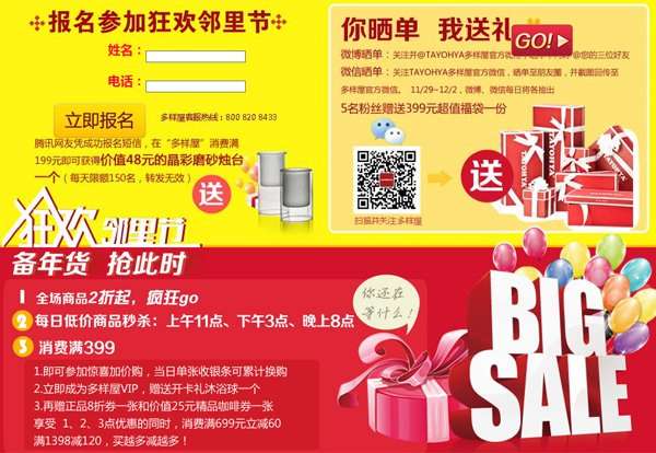 - 2016年11月3日腾讯网友凭成功报名短信,在“多样屋”消费满199元即可获得价值48元的晶彩磨砂烛台一个(每天限额150名,转发无效)上海市徐汇区天登路188号近上中西路欢迎关注腾讯大申家居微信(微信号:sh_home),了解沪上最美的装修案例、最实用装修攻略。,学习交流装修心得,赢可爱QQ公仔。福利:单人一小时沙画体验5个名额免费抢秀家控?38平老房变3室2厅9大功能间秀家控?80后设计师晒78平2居还带花园攻略...