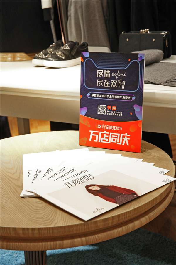 - 2016年11月3日11“万店同庆”活动在服装品牌受邀参与。在银泰武林店柜台,印着国际超模何穗形象的产品册、柜台内外张贴着的双11广告都在为这个即将到来的购物高潮预热的融合将再进一步,消费者能最直观感受到的就是,线上线下同款同价的品牌更多了,以银泰武林店为例,11月11号当日线上线下同款同价,剁手不用再犹豫了EIFINI伊芙丽、SEIFINI诗凡黎、MM麦檬等三大女装品牌。今年双11是EIFINI伊芙丽年全渠道打通,...