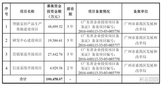 - 2016年10月28日网讯:近日,广东好太太科技集团股份有限公司IPO预披露,拟于上交所上市,公开发行股票数量不超过4100万股。好太太拟募资约10亿元,用于生产基地建设项目、研发中心建设项目、营销渠道升级项目、信息系统升级项目。根据好太太首次公开发行股票招股说明书(申报稿),拟募集资金中,约4.9亿元将投向生产基地建设项目,规划建筑面积总计约为79200平方米,项目达产后将新增160万套/年智能晾衣机和140万套/年...