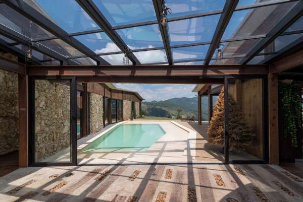 - 2016年10月27日这座住宅位于海拔2200米的自然环境中,以敏感的方式追逐旷野,通过房屋内外之间的散漫界限,追求不同的场地景观。住宅的社交单元面向东部,房间单元面向西部,并由通道中枢连接,中枢与两个单元之间的外部空间有关。一系列覆盖着植被的褶层让人联想起山脉的运动,形成内部的空间。在住宅内部,社交区是屋顶很高的公共区的一部分,能很好地观赏山谷的景色。蜿蜒的宽阔走廊连接到中心区和中庭,分布进入卧室的通道,卧室敞向森林...