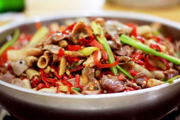 - 2016年10月23日原标题:正宗的重庆黔江鸡杂原来是酸辣味的鸡肠、鸡肝、鸡心等内脏为原料,热菜油烹饪红艳艳的泡椒、粉嫩嫩的泡萝卜丝,不足5分钟,热腾腾的一盆鸡杂端上桌,这就是地道的风味菜———黔江鸡杂。20年前火盆架石头炒鸡杂上世纪90年代初,鸡杂开始在黔江的小馆子中出现。黔江鸡杂到底是谁发明的?黔江人至今有多种说法。24日,黔江区商务局副局长陶辉和黔江餐饮商会秘书长苏康,带领重庆晚报记者一探黔江鸡杂的渊源。正宗的重...