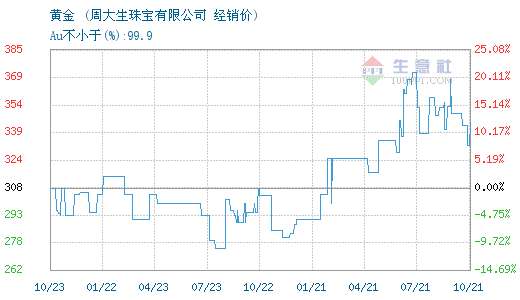 - 2016年10月23日生意社10月18日讯10月18日周大生珠宝有限公司关于黄金的报价为332元/克。黄金的属性:Au不小于(%):99.9。该报价有效期为3天。...