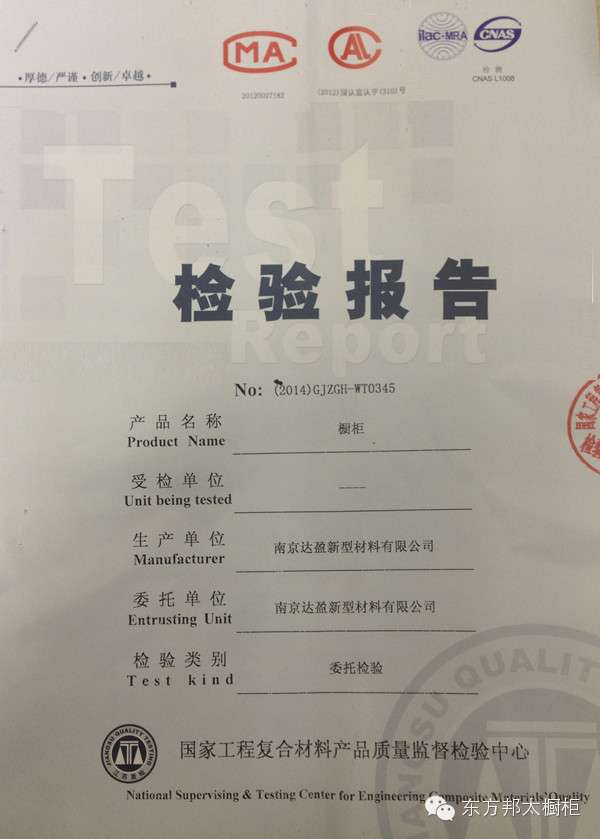 - 2016年10月22日东方邦太橱柜始终以生产健康环保优质的产品为已任,凡东方邦太生产的产品除工厂有严格规范的自检流程外,还会定期送往国家最权威检测机构----国家工程复合材料产品质量监督检验中心,依据国家相关标准《GB18584-2001》进行检测,并不定期地接受抽检。全年的所有检测合格,尤其在甲醛释放量上,不仅达到国家规定的小于1.5mg/LE1级限量标准,同时还达到了小于0.3mg/L的F★★★★级标准。国家级检测...