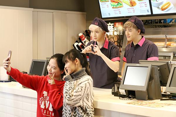 - 2016年1月28日近日,肯德基几位高能店员为顾客提供“舞”餐服务的一段视频在网络上走红,其热情酷炫的舞蹈成为许多网友关注的焦点。图1-肯德基高能店员被求合影视频中,先是几位提供点餐、送餐、打扫服务的小鲜肉店员被顾客求合影,而后,当几位顾客因为好奇扫描了肯德基餐垫纸上的二维码听歌时,“店员”们迅速集合,为顾客们表演了一场真人版的歌舞秀。这群小鲜肉的身份也呼之欲出——与肯德基K-MUSIC合作的男子组合ZERO-G。图...