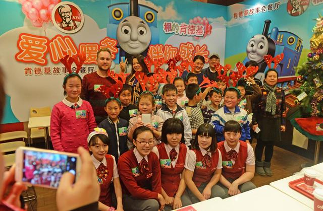 - 2015年12月23日故事会活动合影外来务工子女同享暖心“肯德基故事会”:“一个故事一份美食一次互动一生受益”“chocolate!”“巧克力!”……在美籍英语老师Josh的引导下,孩子们充满稚气的嗓音、洋溢着快乐的答案回荡在肯德基黑牛城餐厅。2015年12月22日下午,“相约肯德基爱心暖冬伴你成长”肯德基社区关爱行动在肯德基黑牛城餐厅举行。在肯德基故事姐姐和“伴你成长”公益计划的志愿者引领下,来自河西区尖山街红山里社...