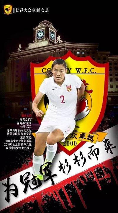 - 2016年2月5日(官方海报)河北足球网讯(尹建华)2月5日长春大众卓越女足发布消息,河北女足队长、国家队球员刘杉杉加盟长春女足,并发布了名为“为冠军杉杉而来”的海报。值得一提的是,长春女足两天前刚刚宣布了北京女足队长赵容加盟,今天长春女足再次引爆女足转会市场,如此迅速和重磅的引援力度,新赛季是否能够打破连沪争霸的格局,让我们拭目以待!在此,河北足球网及广大河北球迷祝愿刘杉杉在未来的职业生涯再攀高峰!...