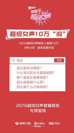 - 2016年2月23日图1:超级女声10万“说”图2:95后扛起超女大旗图3:湖南四川成超女聚集地图4:十二星座都爱唱歌图5:《小幸运》热潮席卷超女图6:睡前是超女报名高峰期...