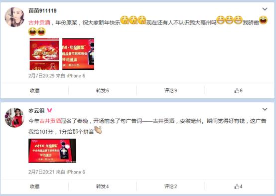 - 2016年2月16日在猴年除夕夜央视春晚即将开播前,一则来自安徽亳州的古井贡酒企业一线员工代表集体拜年的视频,引发了社会各界广泛的关注和点赞。因为这是央视春晚举办33年以来企业基层员工首登央视春晚平台向全国人民拜年,开创了先例,也是中国老八大名酒之一的古井贡酒首次在全球收看人数最多、世界上收视率最高、播出时间最长、演员最多的综艺晚会“央视春晚”平台拜年。据悉,除夕夜春晚直播期间约有10.33亿全球观众收到了这份祝福。...