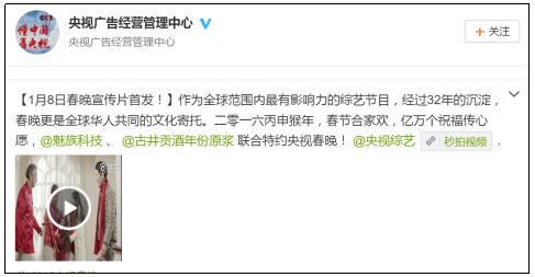 - 2016年1月8日今天中午,魅族春晚预热广告首次在央视播出,古井贡酒与魅族手机共同出现在这一次的联合特标宣传广告中。魅族公司又一次通过春晚的广告赞助在全国人民面前风光了一把,想起早前魅族CEO黄章霸气的一句转发十万就去投央视春晚黄金位置广告,魅族还真肯砸钱。中央电视台微博截图2003年,魅族在珠海正式创立,十二年来在科技创新领域付出了巨大的努力。曾经是国内著名的MP3制造厂商的魅族,面对日益衰落的播放器产业,毅然从...
