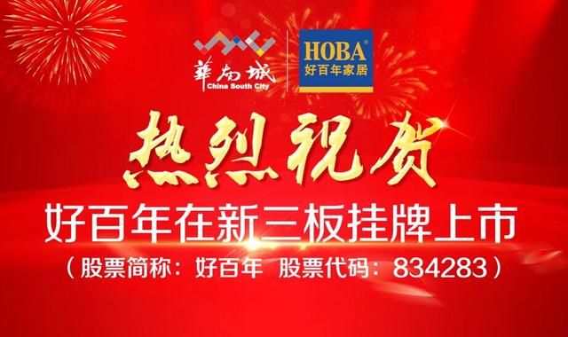 - 2015年11月17日(股票简称:好百年股票代码:834283)2015年11月16日,深圳市好百年家居连锁股份有限公司正式挂牌新三板(股票简称:好百年;股票代码:834283)。作为家居流通业里首家在新三板独立上市的企业,好百年家居将迎来其发展史上的里程碑和新起点。十八春秋·磨剑铸行业典范——创建于1997年的好百年家居是国内知名家居连锁集团,旗下拥有两大家居零售品牌:HOBA好百年家居、METEN美庭家居。目前已在...