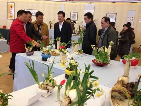 - 2016年1月8日新华网北京1月8日电以“羊毫书画丰收乐金猴水仙满庭芳”为主题的第五届北京?漳州水仙花文化艺术展,8日在中国插花艺术博物馆开幕。图为来自漳州的水仙花艺师在介绍水仙花插花技艺。此次活动主要展出水仙花雕刻作品、水仙花鲜切花插花作品、水仙花文化作品等,其中包括水仙花雕刻大景作品、中景作品、小景作品共计1561件,还展出具有时代感的水仙花鲜切花插花作品、水仙花文化作品等。来自漳州的水仙花雕刻师现场介绍了水仙...