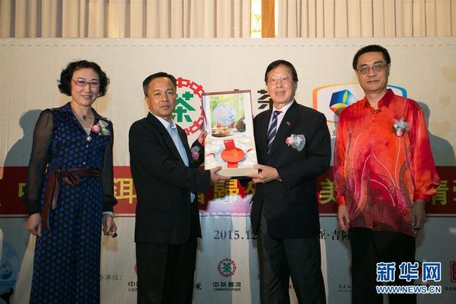 - 2015年12月7日12月6日,在马来西亚吉隆坡,云南中茶总经理邹广田(左二)与马来西亚中国总商会总会长黄汉良(右二)向消费者推介中茶新品“臻品蓝印”。当日,中粮中茶茶叶有限公司在吉隆坡举办2015中茶新品“臻品蓝印”发布会,以茶文化推动两国文化交流。新华社发(王大伟摄)12月6日,在马来西亚吉隆坡,模特在展示中茶新品“臻品蓝印”茶饼。新华社发(王大伟摄)...