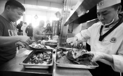 - 2016年2月5日本站文章谢绝转载,否则法律后果自负!运动员因备战奥运无法回家过年,全聚德厨师登门送上烤鸭大餐摄/记者曹博远法制晚报讯(记者张鑫)再过两天就是农历除夕,大部分市民都在为过年做最后的准备。但是,有一些人在过年时也要坚守岗位。今天中午,全聚德的厨师特地为备战里约奥运会的运动员们送上烤鸭大餐。在国家体育总局训练局备战奥运运动员餐厅里,来自全聚德和平门店的6位大厨和4位服务师热火朝天地忙活着,有的片鸭,有的...