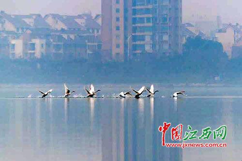 - 2016年1月4日“高楼大厦之间,忽然看到一群天鹅飞过,之后又停留在了艾溪湖中,这样的画面实在让人激动不已。”1月3日,不少家住南昌市高新区的市民都见证了这一历史性时刻。当日上午9时40分,8只小天鹅由鄱阳湖方向飞至艾溪湖上空,并沿着周边城区盘旋,之后全部降落在湖中,整个过程持续了约一个小时,后因湖边行人增多,小天鹅们起飞离开了该区域。据江西鄱阳湖国家级自然保护区管理局鸟类专家文思标介绍,小天鹅飞临城市湿地尤其是南...