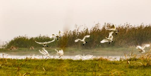 - 2015年11月27日宿迁网讯11月25日,记者从泗洪县洪泽湖湿地保护区了解到,近一周内湿地保护区发现大批国家级重点保护候鸟在此越冬或过境。其中,反嘴鹬约400只、黑尾塍鹬2000多只、豆雁、鸿雁近百只,同时发现国家国家一级保护鸟类东方白鹳、国家二级重点保护野生动物小天鹅、白琵鹭等。小天鹅小天鹅记者跟随保护区的工作人员来到洪泽湖湿地双沟水域,在紧邻淮洪新河边的一块滩涂上,记者看到了上百只的珍禽候鸟。候鸟们时而在河里悠闲...