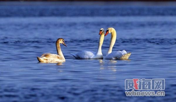 - 2015年12月22日威海网讯(记者张英娥通讯员姜玲于壮志)昨日,来自威海市区的摄影爱好者向本报报料,他和妻子在荣成城区发现了3只疣鼻天鹅和3只小天鹅,十分难得。记者从市林业局了解到,疣鼻天鹅和小天鹅都是在荣成难得一见的天鹅种类。根据观测,疣鼻天鹅多年前曾经在荣成出现过,小天鹅是首次飞抵荣成。正在水中玩耍的3只疣鼻天鹅。两只小天鹅(外侧)正随3只大天鹅在水中觅食。姜玲摄这名摄影爱好者介绍,19日下午,他和同样爱好摄影的...