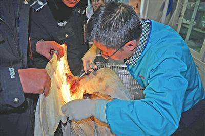 - 2015年12月16日医生替小天鹅缝合伤口。执法人员收缴的渔具。天山网讯(记者严万海摄影报道)12月14日上午,在新疆孔雀河麒麟桥附近水域,一名男子钓鱼时挂伤一只小天鹅。监察人员发现后,男子扔下渔具逃离现场。当日10时许,库尔勒市园林绿化管理局监察大队孔雀河二期中队与天鹅中队的监察人员巡查至孔雀河麒麟桥附近水域,发现一名男子钓鱼时将一只小天鹅的翅膀挂住。与此同时,市公安局交警大队兰干路中队民警也巡逻至附近,见状立即上前...