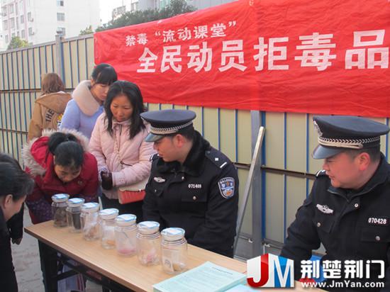 - 2016年2月18日荆楚荆门网讯(罗蒙林文锋)2月16日上午,荆门市公安局东宝分局禁毒大队利用东宝区人社局在东宝人力资源市场门前,举办“2016东宝区春风行动大型招聘会”的有利时机,现场组织开展禁毒“流动课堂”宣传活动,收到了良好的社会效果。活动中,禁毒大队将海洛因、麻果、冰毒等毒品样品摆放在活动现场,禁毒民警认真向求职群众宣讲禁毒知识,发放禁毒宣传资料。求职群众纷纷上前参观毒品样品,主动向民警索取宣传资料,普遍认为...