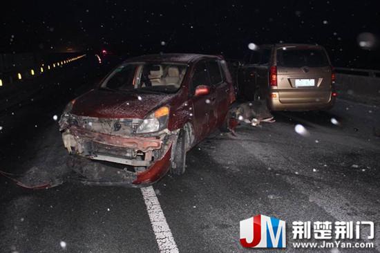 - 2016年1月21日荆楚荆门网讯(罗蒙郐国辉)桥面减速,桥面减速,桥面减速,重要的事情说三遍。昨日,随着湖北省大部分地区降温,湖北随岳高速公路在夜间迎来降雪,虽然雪势不大,但是造成部分路面湿滑,对路面通行造成了一定影响。从21日凌晨开始,随岳高速警察加派警力巡逻,密切关注路情变化,并对路面提前实施撒底盐的工作,防止因为路面快速结冰,引发交通事故。虽然高速警察和高速各个管理部门连夜处置,但是仍然有些司机发生了交通事故。...