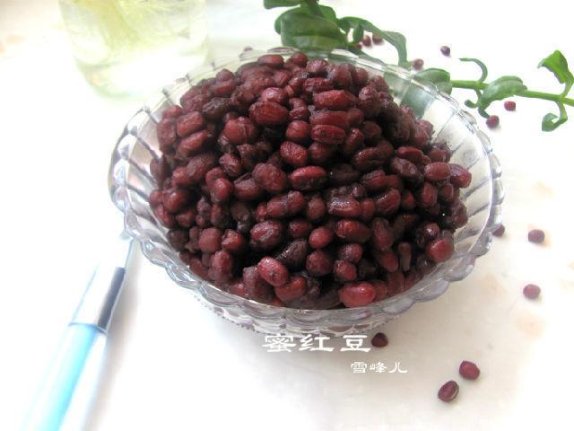 - 2016年1月3日用蜜红豆做面包,做蛋糕都很不错的,红豆还有补血,补铁的功效,多吃一些对身体有益,同时红豆还有补肝的作用,总起来说,多吃红豆有益身体。。。这款蜜红豆简单好做,很很好吃呢。。。材料。红豆,老冰糖,蜂蜜。做法。1,红豆用水浸泡2个小时以上,如果没时间也可直接煮。2,放到锅里大火烧开。3,改小火煮约1小时。4,另起一锅,加入冰糖小火焖化。5,等水?干,两一会,加入两勺蜂蜜拌匀。6,蜜红豆就做好了。。。吃一...