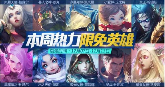 - 2015年12月7日本周限免,不仅有超级强力的奶妈兼团控风暴天使-拉斐尔,还有目前游戏中最火的肉盾兽人之神-欧克、强力肉法冥王-哈迪斯、单杀之王黑魔法之神-赫尔、可AD可AP的小爱神-丘比特、强力辅助沙漠死神-黑风暴、奶妈水之天使-温妮。圣战神-凯文、极光女神-菲欧娜、精灵女神-狄安娜照旧作为常规限免登场。周免风暴天使-拉斐尔拉斐尔兽人之神-欧克欧克冥王-哈迪斯哈迪斯黑魔法之神-赫尔赫尔小爱神-丘比特小爱神沙漠死神-...