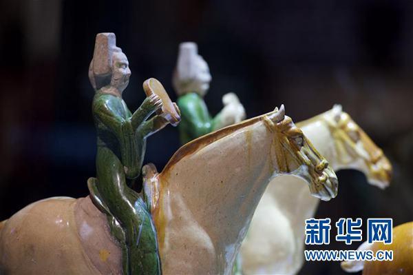 - 2015年12月4日河南博物院的唐代三彩骑马持排箫男乐俑在台湾展出。新华社记者姜克红摄新华网台北12月4日电(记者吴济海、李寒芳)“盛世风华——洛阳唐三彩特展”4日下午在台湾历史博物馆举行开幕典礼。这是分隔两岸的洛阳唐三彩66年来首次合璧展出,共同展现了唐三彩的工艺风华及大唐盛世荣光,见证了两岸对中华文化的共同传承。头戴圆顶式梁冠、身着高翻领宽袖衣的三彩文官俑身躯直立,神情自若;胡人俑大眼高鼻,满脸胡须,左手握拳于胸...