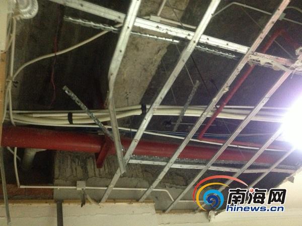- 2013年5月8日大厦三层爆裂的消防管及完全脱落的天花板杨女士表示,店内衣柜、墙面损失达10万元左右南海网海口5月8日消息“单我店里损失就约10万元,物业却迟迟未给出说法。”今天,海口的杨女士向南海网反映称,几日前,海口瑞宏大厦三层的一消防管突然爆裂,致使该大厦一到三层的多家商铺遭水侵泡,损失惨重。8日上午,南海网记者来到位于海秀东路的瑞宏大厦进行走访。杨女士告诉记者,她在该大厦经营一家衣柜店已有多年,平时生意不错...