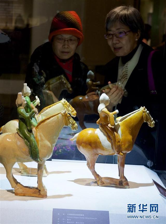 - 2015年12月4日12月4日,观众在台北欣赏河南博物院收藏的唐代三彩骑马持排箫男乐俑。当日,由台湾历史博物馆、河南省文物局、台湾鸿禧艺术文教基金会共同主办的“盛世风华—洛阳唐三彩特展”在台湾历史博物馆举行开幕典礼。这是分隔两岸的洛阳唐三彩66年来首次合璧展出,共展出两岸各60件共计120件唐三彩精品,展现了唐三彩的工艺风华及大唐盛世荣光,见证两岸对中华文化的共同传承。新华社记者姜克红摄...