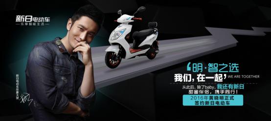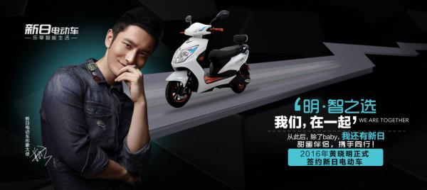 - 2015年12月16日近日,电动车行业龙头企业新日电动车有大动作传出。号称霸道总裁的内地一哥黄教主——黄晓明正式出任新日电动车品牌代言人。从此,顶级品牌与优质偶像强强联手,新日电动车的品牌影响力将进一步扩大。形象定位:开启国民电动车时代!作为国产电动车品牌的骄傲、新日电动车在业内有着辉煌的成绩,而来自中国内地的优质偶像黄晓明兼具演员、歌手和商人三重身份。继杨洋、罗志祥、刘烨、徐峥等众多大牌明星选择新日电动车之后......
