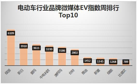 - 2016年1月14日大家好!我是小辣椒,又到了公布电动车品牌微媒体EV指数周排行榜的日子了。本期是EV指数周排行榜的第37期。从整体的数据来看,本期EV榜整体指数相较上期有所上升,其中绿源电动车发力夺榜首,新日电动车紧随其后,爱玛第三,澳柯玛掉至第五。下面就让我们来看一下具体数据。本期,绿源领跑本期EV指数榜,新日紧追其后,爱玛第三,牛电科技、澳柯玛再进榜单前五强。排在榜单第6位至第10位的分别是台铃、雅迪、新蕾、绿...