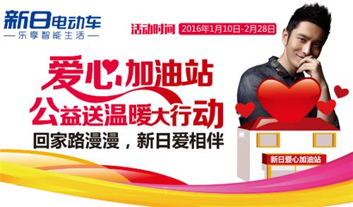- 2016年1月18日2016年1月16日,由新日电动车主办的“爱心加油站”公益送温暖大行动在深圳、南宁两地同步启动!本次“爱心加油站”主题活动将在广东、广西沿途国道以及新日终端门店设立多个爱心服务站,为南方骑摩托返乡务工人员提供贴心服务,送去寒冬里的温暖。每逢新春来临之际,一批批南方务工人员选择骑摩托车的方式返回家乡。成千上万辆摩托车,在寒风中呼啸而过,浩浩荡荡的返乡“摩托大军”呈现在我们眼前,这也成为春运路上一道别...