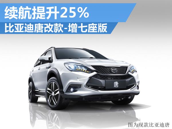 - 2016年2月16日近年来比亚迪加码新能源汽车,并发力SUV市场,推出了首款插电式混合动力SUV“唐”。根据比亚迪十三五规划,今年将重点发力多款新能源车型。近日,网通社从比亚迪内部人士获悉,比亚迪唐将推出改款车型,规划增加7座版本,有望于今年三季度正式上市。值得一提的是,新车在纯电模式下续航里程有望达到100公里,相比现款提升25%。比亚迪唐定位于B级SUV,车身长宽高分别为4815*1855*1720毫米,轴距为2...