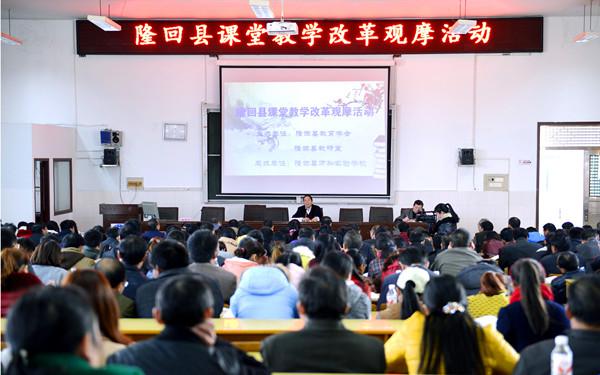 - 2015年11月26日邵阳新闻在线讯(通讯员:刘建华)11月26日,隆回县课堂教学改革观摩活动在该县万和实验学校举行。参加本次活动的有该县教育局长彭和生、湖南省教科院原副院长唐国庆、该县教育局副局长欧阳晓明、傅高璋主任、阳习云主任、该县教研室主任金龙永等,来自城步县的领导、教师共17人,来自本县26个乡镇及县直单位的领导老师们400多人。本次活动由金龙永主任主持。本次活动分两部分进行,首先听取课改报告,然后深入课堂听课...