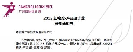 - 2015年12月2日近日揭晓的2015年度中国产品设计领域最具影响力的“红棉奖”评选结果中,恒洁卫浴两款参选产品经过激烈角逐,全部夺得“红棉奖·产品设计奖”。除第四代智能马桶之外,另一位获奖主角是去年就曾荣获过红棉奖的雨沐系列花洒。同一系列产品竟然两次揽获“红棉产品设计大奖”,这不禁引起了人们的好奇:雨沐花洒究竟有何魅力能再一次征服评委会的专家们?好的设计是不断创新的。与去年获奖的雨沐花洒相比,新一代雨沐花洒的设计自...