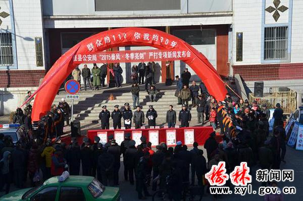 - 2016年1月11日新闻发布会1月8日,佳县公安局召开“2015秦风.冬季亮剑”战果新闻发布会,县委政法委副书记郭景铭、宣传部副部长暴海雄应邀指导了会议。县委宣传部、佳县报、县广播电视台、县政法网站、县政府网站等新闻媒体的记者及该局在家的全体局领导、机关部分民警参加了会议。副局长杜军孝通报了全县“2015秦风.冬季亮剑”战况,会议由该局党委副书记、政委魏锦斌主持。会上,副局长杜军孝同志从“打、防、管、控”等方面简要总...