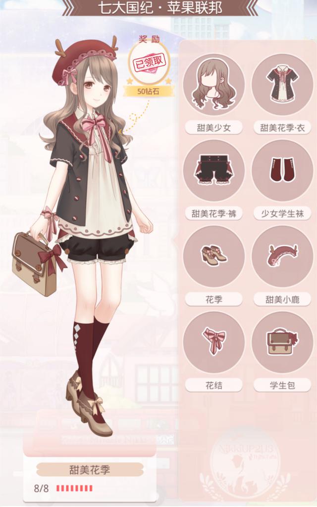 - 2015年12月10日名称:甜美花季位于:七大国际*苹果联邦主要属性:活泼、可爱、清纯特别标签:【森系、洛丽塔、欧式古典、英伦】位于奇迹大陆的苹果联邦是大陆最大的国家,也是设计师和搭配师的天堂,而大陆最大的学院就在苹果联邦,那里有着一群正努力学习各种服装知识的少女们,当然还少不了青春时尚的校服啦!做为新生代美女的日常搭配,联邦学院的设计师们可是绞尽脑汁才做出这套甜美花季,它是由8个部件组成的甜美少女、甜美花季·衣、甜美...